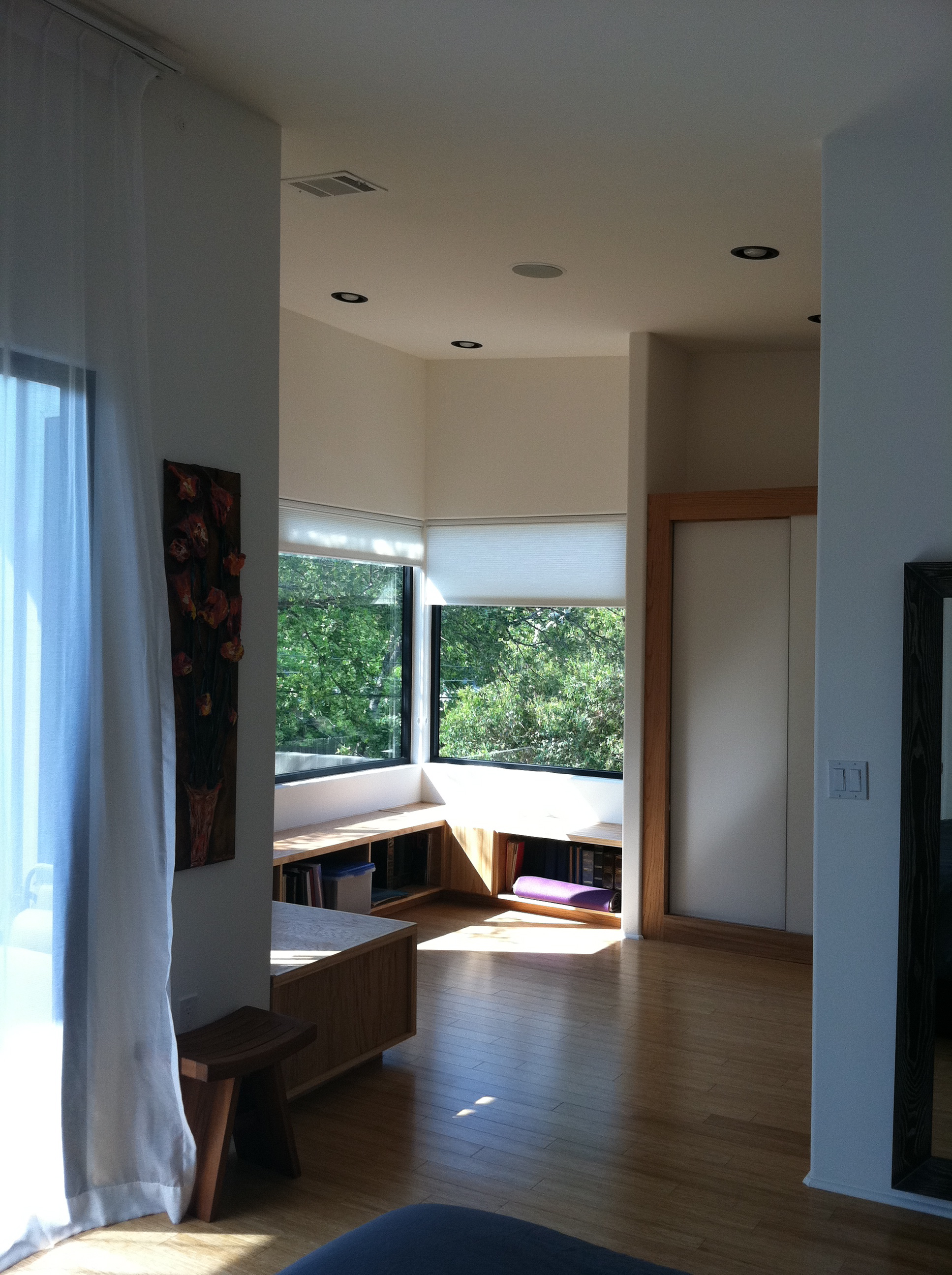This 4-star Austin Green Energy Building Program rated home was selected for the 2011 Austin Cool House Tour which features homes with innovative energy efficient designs. The design focused on maximizing light and spaciousness within the modest sized footprint. The original roof and wall materials, which were beautiful old-growth Longleaf Pine and Cedar boards, were carefully salvaged and incorporated into the exterior facade and soffits.